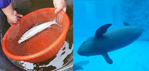 À gauche : le poisson tube, en danger critique d’extinction – le dernier stade avant l’extinction à l’état sauvage d’après l’Union internationale pour la conservation de la nature– a refait son apparition sur une dizaine des 57 sites étudiés. À droite : marsouin aptère à l'Institut hydrobiologique de Wuhan. Crédits : Sébastien Brosse.